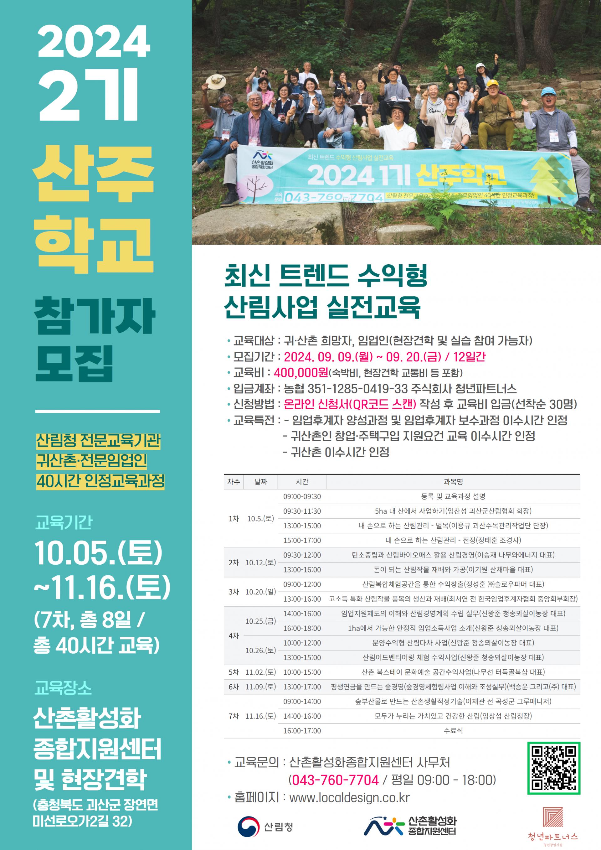 올해 산림청 전문교육기관 지정을 받아 40시간 인정 교육과정으로 진행됩니다.
